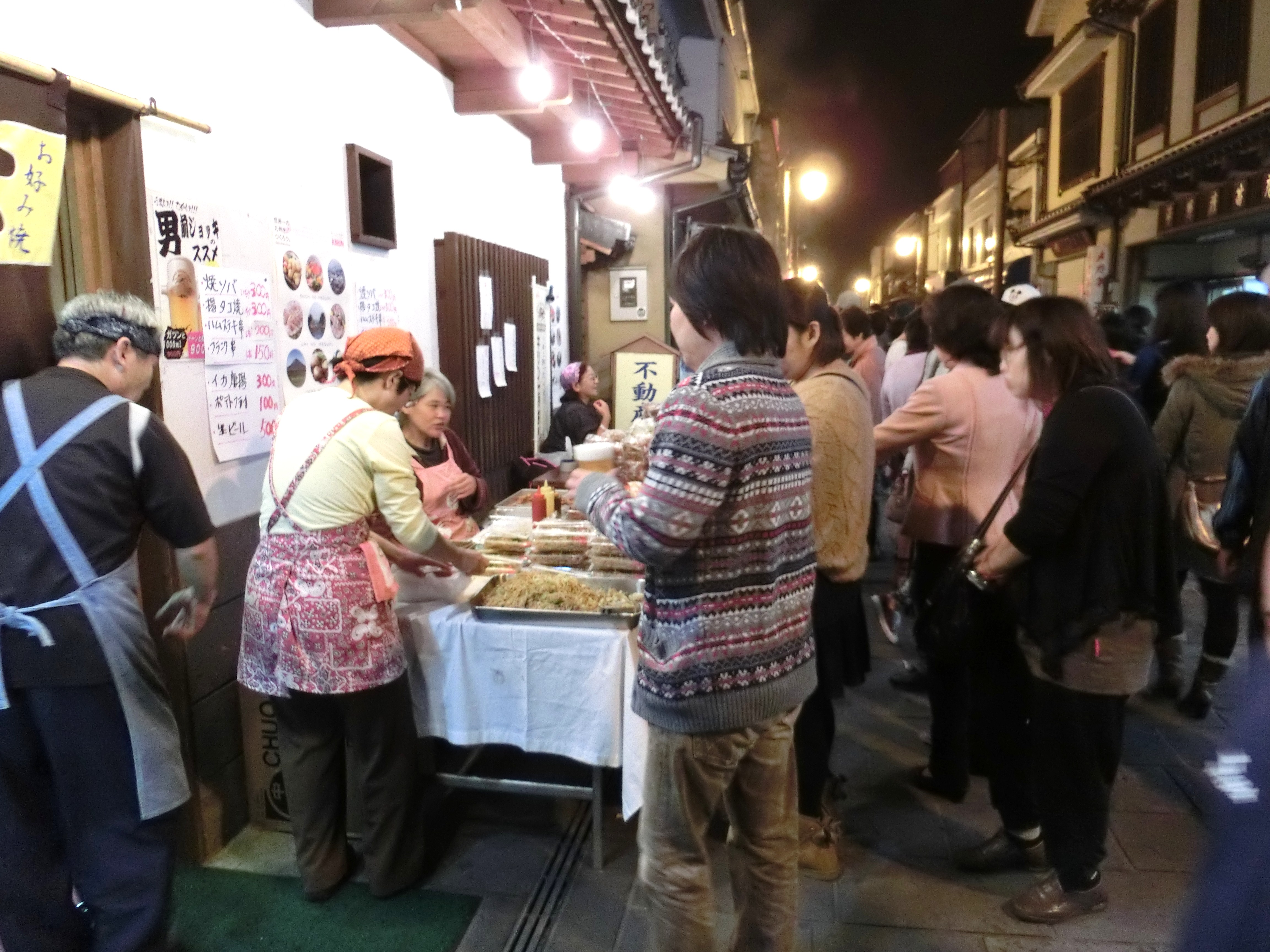 夕方ですのでお腹が空く頃ですが、焼きそば等のお店も一杯出ているので、まずは腹ごしらえ。