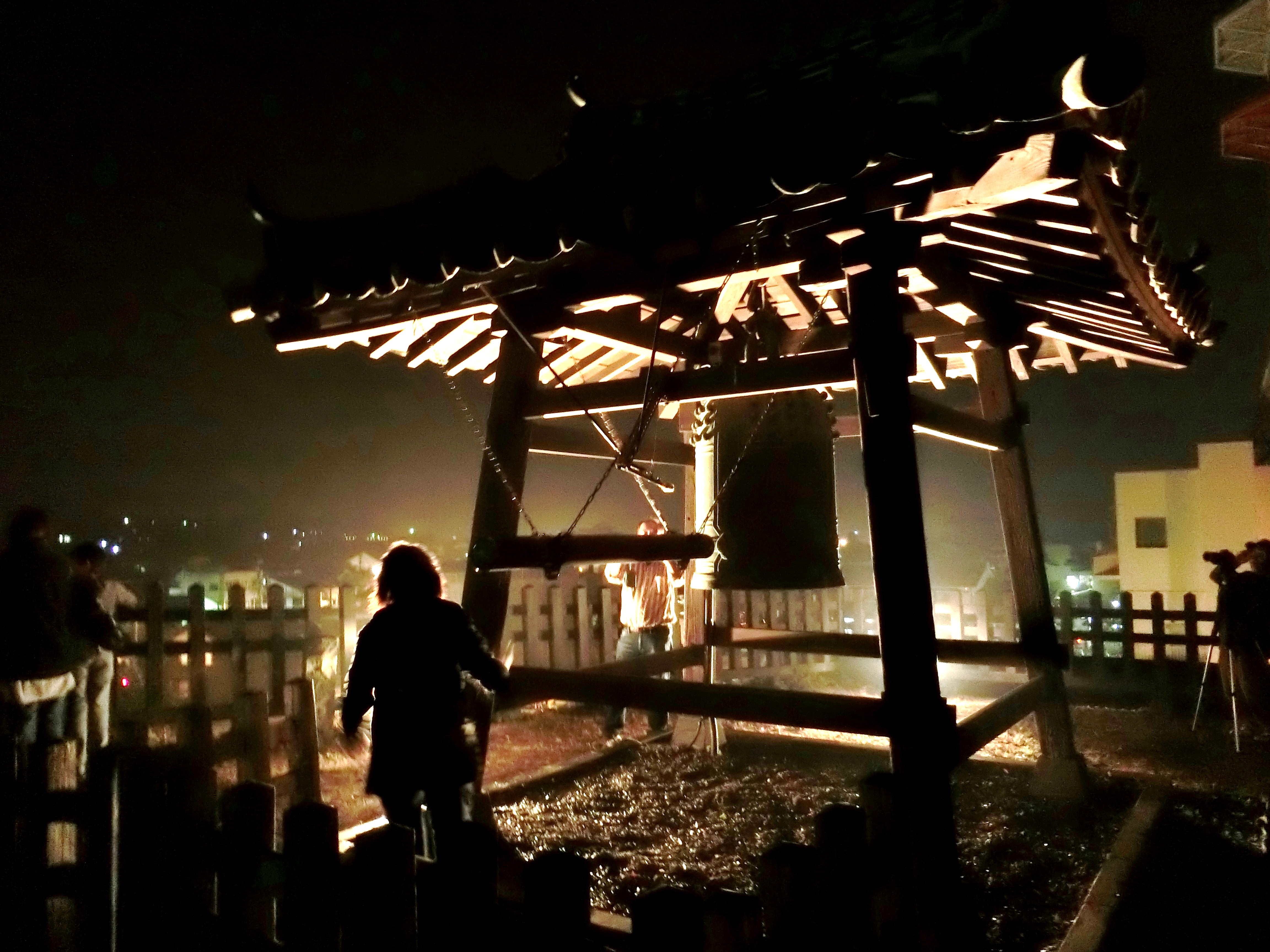 鐘楼では、鐘を打つ為に人々が並んでいます。