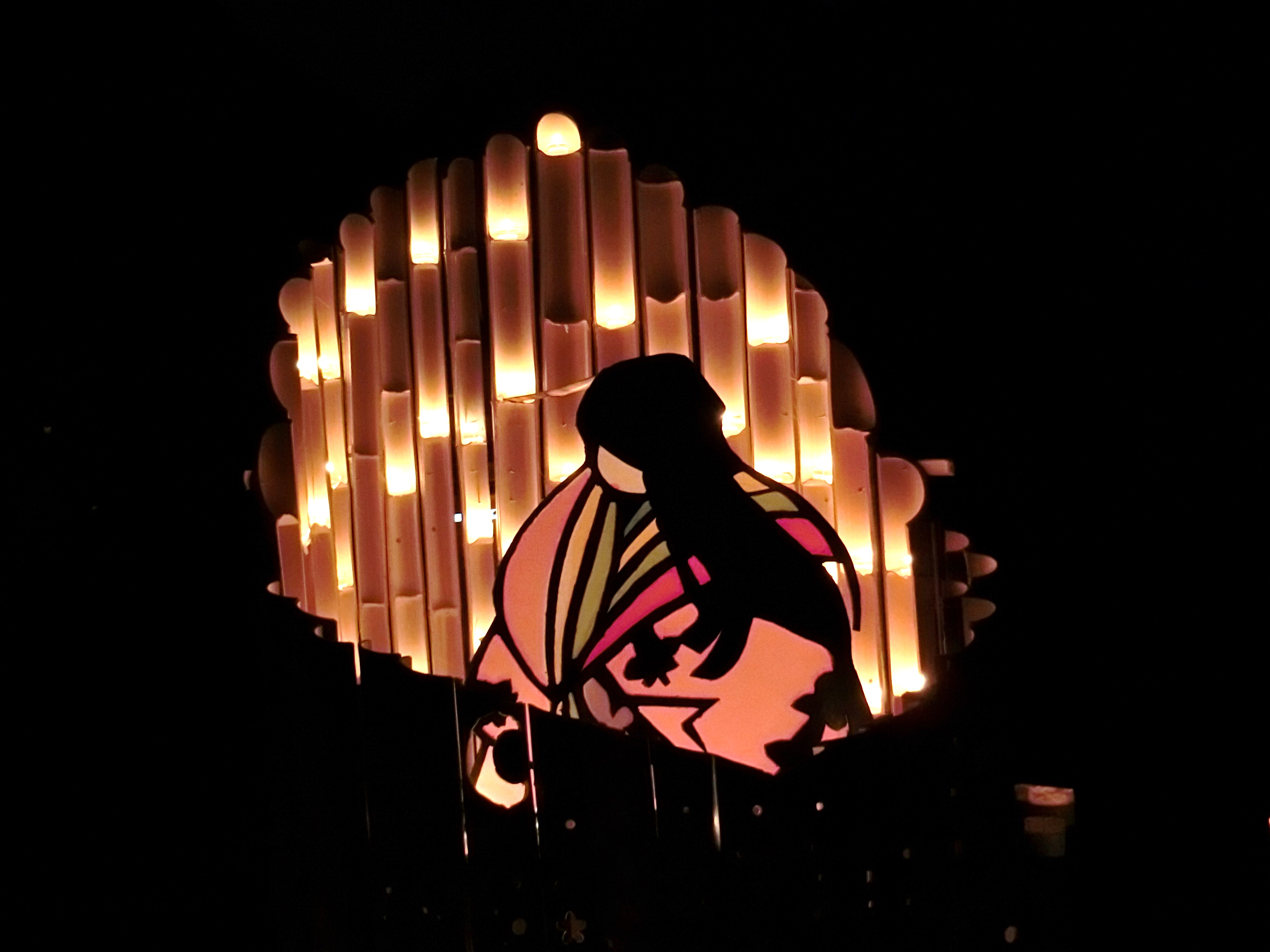 うすき竹宵は、長者夫妻と玉絵姫が待つ臼杵に、般若姫の御霊が里帰りしたという伝説を再現したものです。